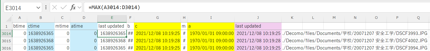 Excelからタイムスタンプ,ファイルパスのCSVを書き出し、以下のようなスクリプトに食わせればmtime, atimeがそれなりに復旧できる。