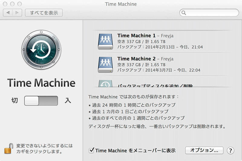 オリジナルへの直リンク%sへ戻る文書の先頭へ multiple_time_machine.png Share via Share via... Twitter LinkedIn Facebook Pinterest Telegram WhatsApp Yammer Reddit Teams最近の変更Send via e-Mail印刷パーマリンク × Size of this preview: 800 × 533 pixels. Other resolutions: 80 × 53 pixels 200 × 133 pixels 400 × 266 pixels 600 × 399 pixels 800 × 533 pixels blog:2014:multiple_time_machine.png ( 800 × 533 pixels ) Information 日付:2014-03-16 23:02ファイル名:multiple_time_machine.pngフォーマット:PNGサイズ:78KB幅:800高さ:533 参照先 Time Machineのバックアップ先は複数指定できる 閲覧権限の無いページや非表示ページは表示されないので、このリストは完全でない場合があります。 Metadata Exif IPTC blog/2014/2014-03-16.txt 最終更新: 2015-05-14 15:44by Decomo