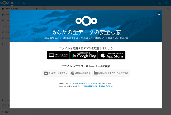 オリジナルへの直リンク%sへ戻る文書の先頭へ nextclound12_setup_wizard_2.png Share via Share via... Twitter LinkedIn Facebook Pinterest Telegram WhatsApp Yammer Reddit Teams最近の変更Send via e-Mail印刷パーマリンク × Size of this preview: 561 × 380 pixels. Other resolutions: 56 × 38 pixels 140 × 95 pixels 280 × 190 pixels 420 × 285 pixels 561 × 380 pixels freebsd:nextclound12_setup_wizard_2.png ( 561 × 380 pixels ) Information 日付:2017-08-23 18:09ファイル名:nextclound12_setup_wizard_2.pngフォーマット:PNGサイズ:95KB幅:561高さ:380 参照先 FreeBSD 11でNextcloud 11サーバを作る 閲覧権限の無いページや非表示ページは表示されないので、このリストは完全でない場合があります。 Metadata Exif IPTC freebsd/freebsd_11_install_nextcloud_11.txt 最終更新: 2017-08-24 17:32by Decomo