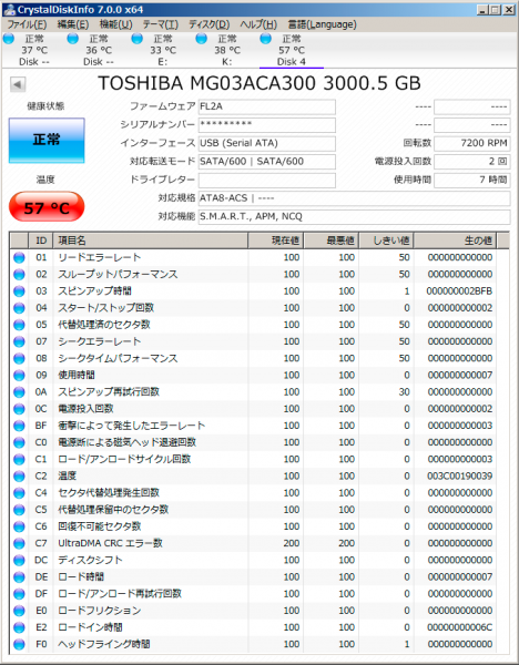 ソースの表示以前のリビジョンバックリンク全て展開する/折り畳む文書の先頭へ Share via Share via... Twitter LinkedIn Facebook Pinterest Telegram WhatsApp Yammer Reddit Teams最近の変更Send via e-Mail印刷パーマリンク × « 再配達で他の郵便局窓口での受取指定にした荷物は「送付→保管中」になる ZFSと雖も不意の電源断でデータが破損する事がある » TOSHIBA MG03ACA300購入 どこかからの放出品なのか、東芝のエンプラ向けHDD MG030ACA300が安かったので買ってみた。例によってCDMの結果を貼り付け。これまた例によってUSB 3.0変換での結果なので参考程度にオナシャス。 5860533167セクタを6時間42分でゼロクリアできたので、平均書き込み速度は118.6MiB/sという結果に。 速度は至って普通だが、ゼロクリア中の最高温度が60℃(室温26.5℃)と最近のHDDにしてはかなり熱め。アイドル状態で1時間放置しても53℃で、使ったケースがスライディング裸族で放熱性が悪いことを差し引いても熱い気がするなぁ。似たような条件でここまで高温になったHDD見たことないし。実運用では放熱をしっかり考慮する必要がありそう。実家の屋根裏サーバに使うつもりだけど、果たして大丈夫か!? Comments Name E-Mail Website 人間の証明として、ボックス内の全ての文字を入力してください。 この項目は空のままにして下さい:Preview Comment blog/2017/2017-02-13.txt 最終更新: 2017-02-17 19:37by Decomo