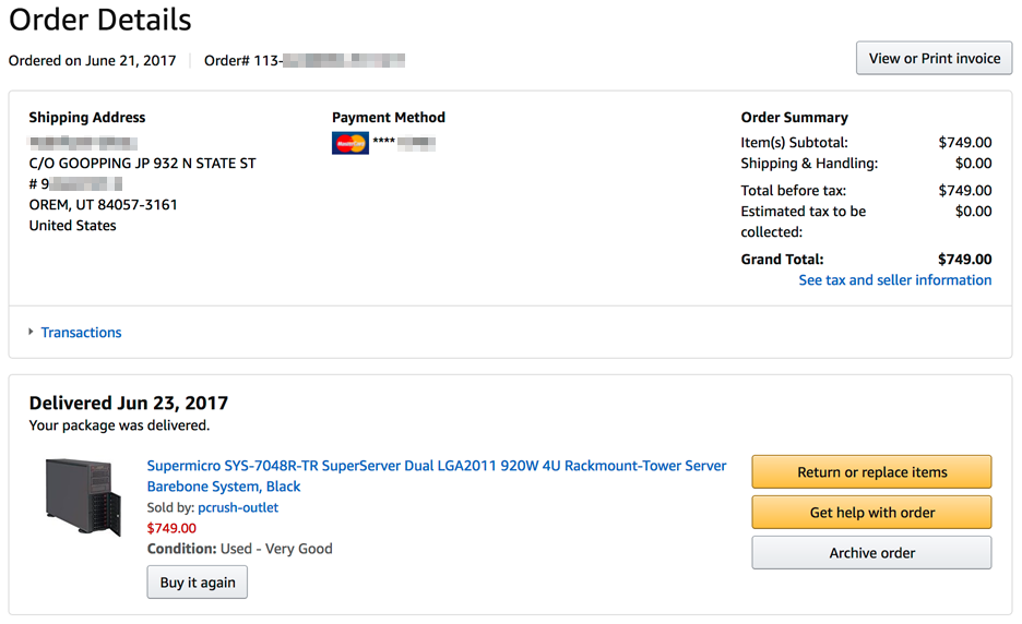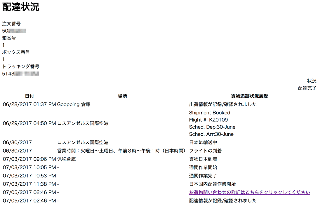 ソースの表示以前のリビジョンバックリンク全て展開する/折り畳む文書の先頭へ Share via Share via... Twitter LinkedIn Facebook Pinterest Telegram WhatsApp Yammer Reddit Teams最近の変更Send via e-Mail印刷パーマリンク × 目次 SuperServer 7048R-TRをGoopping経由で輸入したお話 前書き Amazonへの注文からGooppingへの受け入れ Gooppingの発送から受け取り 荷物転送にかかった費用 商品入手にかかった総費用 届いたのがSuperWorkstation 7048A-Tな件 最終的にかかった費用 « ESPの容量は512MB (512MiB)以上が推奨らしい Cisco Catalystに繋いだPCが通信可能になるまで時間がかかるのはSTPのせい » SuperServer 7048R-TRをGoopping経由で輸入したお話 前書き もう6月の事になるけど家鯖更新したい病を発症した。 C2750D4IでIPMI&BMCの便利さに目覚めてしまったので、新鯖でもそれらは必須。高くても質が良くて長く使えるもの、メンテナンスしやすいもの、拡張性と汎用性(ベンダー独自仕様ではない)があるもの、という条件も加えると合致するのはSupermicro(以下●)の製品群しかなかった。それから、CPUは8コア以上がいいよね、今更DDR3ってのもアレだからDDR4がいいよね、LANポートは2個+管理用1ポートあるのがいいよね、HDDはホットスワップベイがいいよねと夢が膨らんだ結果、同社のSC745ケースにX10DRiマザボを組み込んだSYS-7048R-TRに行き着いた。 問題は、ちょっとPC自作に詳しい人なら分かると思うけど、日本では●製品は入手性が良くない上に割高なのよね(´・ω・`)。例えば、豊富な●製品を扱い値段も安めのマイスペック・コムでは7048R-TRの取扱はないものの、下位機種と言える7048A-Tですら159839円もする(2017-09-24現在)。下位機種でこの値段だから7048R-TRはお察し下さい。対する米尼の7048A-Tは$1025.42なので、1ドル=112円として115000円程度。ちょっと差額が開き過ぎですよね。こういう時は個人輸入だ! しかもラッキーな事にマケプレでVery GoodなUsedの7048T-RTが、たった$749で出てるのを見つけてしまった。他の業者より頭2つ飛び抜けて安いし、7048A-Tの中古よりも安いという…。だもんで業者に「本当に7048T-RTか?間違いない?」と確認メール送ってみたら「7048T-RTだ。詳しくはメーカーサイトを見ろ」とご丁寧にURL付きで返事が来た。これはもう買うしかねぇ!当然ながら日本には送ってくれないので転送業者の登場だ!! というわけで、ここからが本題。 Amazonへの注文からGooppingへの受け入れ 転送業者は見積もりで送料が一番安かったグッピングにした。実はそんなに深く考えてない。見積もりは↓こんな感じ(当時の情報は取ってなかったので2017-09-27現在の値。その時その時で変動すると思うので参考程度に。)サイズは●の製品情報ページの値を利用。 会員登録して転送先住所ができたら、そこ宛に米尼で商品を購入。米尼で住所を入れると自動で修正されるが、そういうものっぽいので気にしない(Goopping側の情報が古いらしい)。 その足でGooppingに転送依頼をしておく。これを忘れると荷物の受け入れに支障が出かねず忘れると面倒なので、注文後すぐに行っておく。 荷物は日本時間6/22 7:30に販売業者から出荷され、同6/27 1:15にGooppingで受け入れ完了。配達自体は2日程前に終わっていたが、あちらの連休が重なり時間がかかったようだ。 Gooppingの発送から受け取り それから、同6/29 4:41に日本に向けて出荷。これまた輸送自体には時間がかからなかったが、運悪く税関の休業日直前に到着したようで、通関まで時間がかかってしまった(´༎ຶ༎ຶ) 国内配送は佐川なので、引き渡されてしまえば早いもの。国内通販と同じ感じで受け取れる。 PCパーツは関税がかからないが消費税は取られる。今回は代引き手数料含め4224円を佐川のにーちゃんに払って無事受け取り完了!この額も事前計算と大差なしだった。 荷物転送にかかった費用 Gooppingへの支払総額は17412円で、明細は以下の通りだった。 サイズの誤差はともかく、箱代で500円請求されてるのは解せない。 到着した箱には今回のAmazon→Gooppingの伝票が張ったままだったので、Goopping側で追加梱包はしてないよね…?国際送料が割り引かれてるのは会員登録時の割引クーポン使ったからなんだけど、それを相殺するために“箱代”を計上してるんじゃないかと勘ぐっちゃうよね(´・ω・`)。今回は送料の占める割合が大きいので500円は誤差で片付けられる範囲だが、小物の場合は馬鹿にならない。ググってみると、サイズや箱代の不明瞭さに言及している記事が出てくるが確かに不明瞭で、後味の悪い結果となった。サービスそのものには概ね満足ですけどね。 商品入手にかかった総費用 SuperWorkstation 7048A-Tの輸入にかかった総費用は下記の通りとなる。 品目 金額 SYS-7048A-T 85014円 転送費用 17412円 消費税 4224円 合計 106650円 (国内価格) 159839円 (差し引き) -53189円 わーい、やったー、国内で買うより5万円も安く済んだぞー。Usedってことだったけど、いざ開封してみたら使われた形跡がなく、どうやらただの開封品っぽいし超ラッキー。 初めての転送サービス利用と初めて