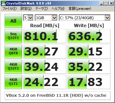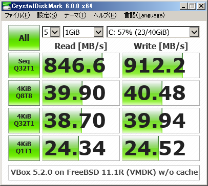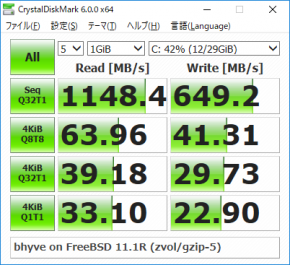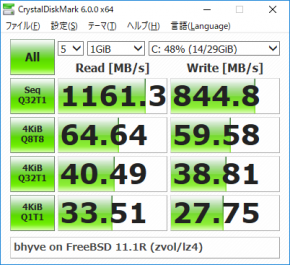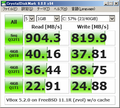 ソースの表示以前のリビジョンバックリンク全て展開する/折り畳む文書の先頭へ Share via Share via... Twitter LinkedIn Facebook Pinterest Telegram WhatsApp Yammer Reddit Teams最近の変更Send via e-Mail印刷パーマリンク × « FreeBSD 11で「warning: total configured swap (X pages) exceeds maximum recommended amount (Y pages).」と言われた時の対処法 ブリッジネットワーク接続の仮想マシンを使う時はport-securityに気をつける » VirtualBox上のWin 7でディスクイメージとzvolの速度比較(ついでにbhyveも) 仮想マシンのストレージ形式について、一般的にはイメージファイルよりもzvolの方が適していると言われている。ホストのファイルシステムレイヤを通過したファイル上にゲストのFSレイヤを通したFSを構築するよりかは、zvol(の薄いレイヤしか通らない)のブロックデバイスをゲストのFSレイヤに渡した方が効率が良さそう、ってのは理屈としても合っている。 以前から実際に速度比較しようと思いつつ、ようやく実行に移せた。環境は以下の通り。 ホスト FreeBSD 11.1-RELEASE-p1 VirtualBox 5.2.0 CPU: Xeon E5-2648Lv3 1.8GHz 12C24T RAM: 64GB SSD: Intel DC S3500 480GB SATA 3接続 ZFSのLZ4で透過圧縮している ゲスト Windows 7 Ultimate (x64) CPU: 4コア RAM: 8GB SSD: VirtIO 40GB ゲストのストレージを、同一内容のイメージファイルとzvolデバイスとで切り替えてCrystalDiskMark 6.0.0で速度を計測した。なお、イメージファイルからzvolへの変換は以下のコマンドで行った。 VBoxManage clonehd /path/to/vms/Windows/HDD.vmdk /path/to/vms/HDD.raw --format RAW zfs create -V 40G zvm/zvols/Windows dd if=/path/to/vms/Windows/HDD.raw of=/dev/zvol/zvols/Windows bs=4096 VBoxManage internalcommands createrawvmdk -filename /path/to/vms/Windows/zvol.vmdk -rawdisk /dev/zvol/zvols/Windows おろ、殆ど変わらんがな…(´・ω・`)。シーケンシャルR/W共にSATA 3の上限ぶっちぎっちゃってるし、ホストのキャッシュが効いちゃってる? というわけで、VirtualBoxの「ホストのI/Oキャッシュを使う」オプションを切って再計測。 すごく、、、速いです………。こりゃZFSのキャッシュが効いてるなー。確認してみるとARCで4.8GB持ってるしなー。ベンチ中にtopで見てるとARCがもりもり増えてくし。 ついでにイメージファイルをHDDに置いた時のベンチも取ってみた。 うっは2.5インチHDDとは思えぬ速さwwwww zpool iostatの結果を見るに、ランダムライトはZFS側でまとめられ、ほぼシーケンシャルライトとしてHDDに書き出されているようだ。 capacity operations bandwidth pool alloc free read write read write ---------- ----- ----- ----- ----- ----- ----- zhome2 1.33T 1.38T 1 922 153K 105M mirror 1.33T 1.38T 1 922 153K 105M ada3p1 - - 0 861 25.5K 105M ada2p1 - - 0 875 127K 107M logs - - - - - - mirror 40K 3.97G 0 0 0 0 ada0p4 - - 0 0 0 0 ada1p4 - - 0 0 0 0 ---------- ----- ----- ----- ----- ----- ----- capacity operations bandwidth pool alloc free read write read write ---------- ----- ----- ----- ----- ----- ----- zhome2 1.33T 1.38T 2 932 277K 111M mirror 1.33T 1.38T 2 932 277K 111M ada3p1 - - 0 919 50.4K 114M ada2p1 - - 1 890 227K 110M logs - - - - - - mirror 40K 3.97G 0 0 0 0 ada0p4 - - 0 0 0 0 ada1p4 - - 0 0 0 0 ---------- ----- ----- ----- ----- ----- ----- capacity operations bandwidth pool alloc free read write read write ---------- ----- ----- ----- ----- ----- ----- zhome2 1.33T 1.38T 0 962 102K 119M mirror 1.33T 1.38T 0 962 102K 119M ada3p1 - - 0 941 102K 117M ada2p1 - - 0 965 0 120M logs - - - - - - mirror 40K 3.97G 0 0 0 0 ada0p4 - - 0 0 0 0 ada1p4 - - 0 0 0 0 ---------- ----- ----- ----- ----- ----- ----- capacity operations bandwidth pool alloc free read write read write ---------- ----- ----- ----- ----- ----- ----- zhome2 1.34T 1.38T 1 940 153K 113M mirror 1.34T 1.38T 1 940 153K 113M ada3p1 - - 0 918 76.7K 113M ada2p1 - - 0 906 76.7K 112M logs - - - - - - mirror 40K 3.97G 0 0 0 0 ada0p4 - - 0 0 0 0 ada1p4 - - 0 0 0 0 ---------- ----- ----- ----- ----- ----- ----- 結論としては、イメージファイルでもzvolでも大差なさそう。ストレージ形式の差よりも、ZFSそのものの動作環境やチューニングの差の方が覿面に影響しそう。なので、好きな方を使えばいいんじゃないかな。俺は扱いやすいイメージファイルの方を選ぶんだぜ。 とりあえずZFSパネェ…。 (2017-11-25 追記) ついでにbhyveでもやってみた。 ストレージは同一SSDだけど、計測環境は新規インストールのWindows 10なので厳密な比較にはならんけど。なお、ストレージはahci-hdで繋いでる。virtio-blkはWindowsでは現状未対応らしい。 ベンチ結果は左から、gzip-5のZFS上のイメージファイル、同zvol、lz4なzvol。 Comments Name E-Mail Website 人間の証明として、ボックス内の全ての文字を入力してください。 この項目は空のままにして下さい:Preview Comment blog/2017/2017-11-23.txt 最終更新: 2020-12-03 12:44by Decomo