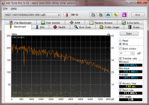 15628053167セクタを13時間37分でゼロフィルしたので、平均転送速度は155MB/sということに。ゼロフィル中、並行で他の作業をしていた点を差し引いてもMD05ACA800よりは遅いと言えそう。
