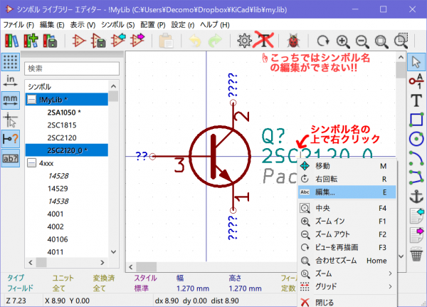 KiCad 5で既存シンボルをコピペして新しいシンボルを作る