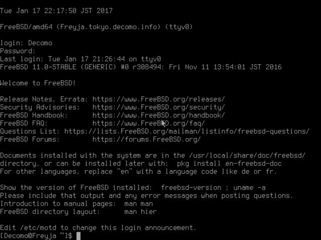 FreeBSD 11で新生コンソールドライバvtがデフォルトで有効となり、いわゆるマルチバイト文字のコンソールでの表示が容易になった。しかし、現時点では対応フォントが組み込まれていないため、日本語は豆腐になってしまう。