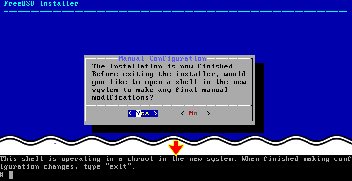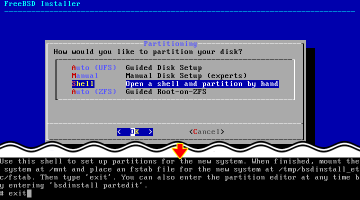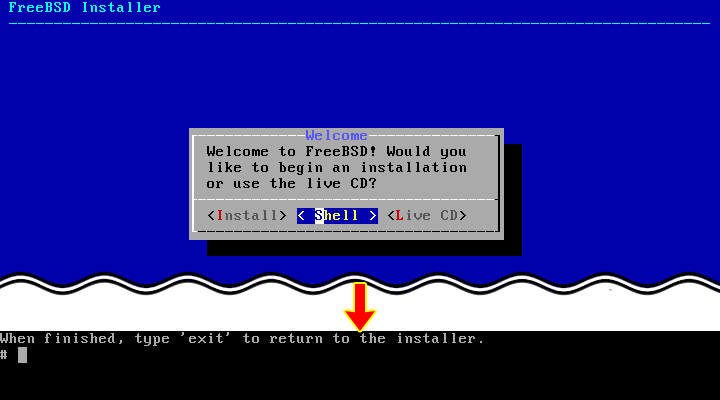 「Shell」に入り、そのままexitするとシステムのインストールが行われる。