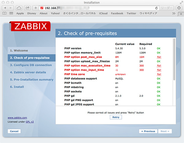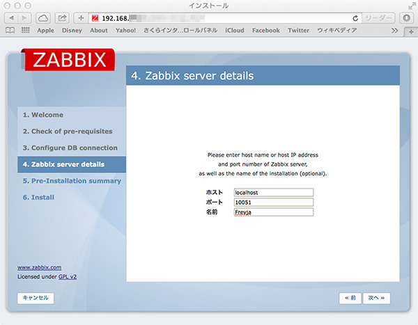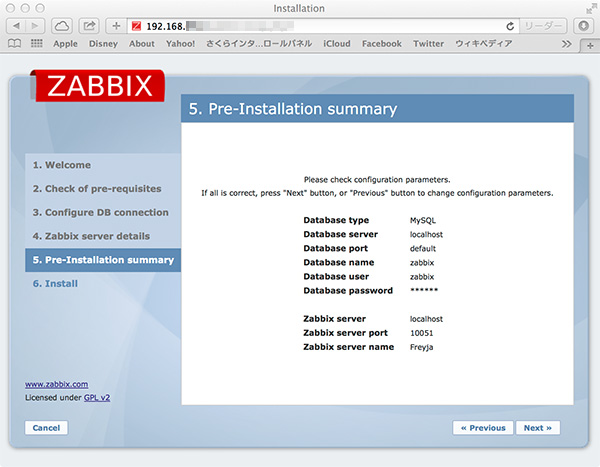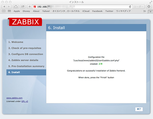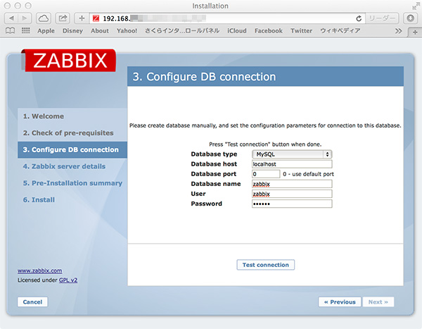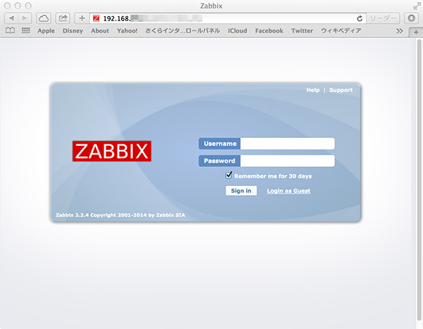 ソースの表示以前のリビジョンバックリンク全て展開する/折り畳む文書の先頭へ Share via Share via... Twitter LinkedIn Facebook Pinterest Telegram WhatsApp Yammer Reddit Teams最近の変更Send via e-Mail印刷パーマリンク × 目次 Zabbixでサーバ監視 試した環境 Zabbixサーバのインストール Zabbixフロントエンドのインストール Zabbixエージェントのインストール 参考サイト Zabbixでサーバ監視 試した環境 FreeBSD 9.2-RELEASE-p1 Zabbix 2.2.4 MySQL 5.6 PHP 5.4 Zabbixサーバのインストール sudo portmaster net-mgmt/zabbix22-server オプションはLIBXML2, SSHを追加してみた(特に理由はない) For Zabbix server and proxy daemons, as well as Zabbix frontend, a database is required. It is not needed to run Zabbix agent. % cd /usr/local/share/zabbix22/server/database PostgreSQL: shell> psql -U <username> psql> create database zabbix; psql> \q shell> cd database/postgresql shell> psql -U <username> zabbix < schema.sql shell> psql -U <username> zabbix < images.sql shell> psql -U <username> zabbix < data.sql MySQL: shell> mysql -u<username> -p<password> mysql> create database zabbix character set utf8; mysql> quit; shell> mysql -u<username> -p<password> zabbix < database/mysql/schema.sql shell> mysql -u<username> -p<password> zabbix < database/mysql/images.sql shell> mysql -u<username> -p<password> zabbix < database/mysql/data.sql SQLite: shell> cd database/sqlite3 shell> sqlite3 /var/lib/sqlite/zabbix.db < schema.sql shell> sqlite3 /var/lib/sqlite/zabbix.db < images.sql shell> sqlite3 /var/lib/sqlite/zabbix.db < data.sql IBM DB2: shell> db2 "create database zabbix using codeset utf-8 territory us pagesize 32768" shell> cd database/ibm_db2 shell> db2batch -d zabbix -f schema.sql shell> db2batch -d zabbix -f images.sql shell> db2batch -d zabbix -f data.sql Upgrade notes for 2.2.0 Minimum supported PHP version changed from 5.1.6 to 5.3.0 Minimum supported MySQL version changed from 5.0.0 to 5.0.3 Accepted data limit when using Zabbix protocol was changed from 128MB to 64MB. New upgrade procedure There are no upgrade SQL scripts anymore - database upgrade is performed by the Zabbix server. To upgrade an existing database, see the scripts in Upgrade notes for 2.2.0 https://www.zabbix.com/documentation/2.2/manual/installation/upgrade_notes_220 Please see https://www.zabbix.com/documentation/2.2/manual/installation for installation instructions. For use NMAP please edit sudoers という事なので、MySQLにZabbix用のDBを作る。 zabbixユーザー追加 mysql> create database zabbix character set utf8; mysql> grant all privileges on zabbix.* to zabbix@localhost identified by 'zabbix'; flush privileges; quit; SQLをインポート cd /usr/local/share/zabbix22/server/database/mysql mysql -u zabbix -p zabbix < schema.sql mysql -u zabbix -p zabbix < images.sql mysql -u zabbix -p zabbix < data.sql 設定ファイルを編集 cd /usr/local/etc/zabbix22 sudo cp zabbix_server.conf.sample zabbix_server.conf LogFile=/var/log/zabbix/zabbix_server.log PidFile=/var/run/zabbix/zabbix_server.pid DBName=zabbix DBUser=zabbix DBPassword=zabbix FpingLocation=/usr/local/sbin/fping ListenIP=127.0.0.1 mkdir /var/log/zabbix /var/run/zabbix chown zabbix:zabbix /var/log/zabbix /var/run/zabbix echo 'zabbix_server_enable=“YES”' | sudo tee -a /etc/rc.conf sudo /usr/local/etc/rc.d/zabbix_server start 57417:20140722:165802.049 Starting Zabbix Server. Zabbix 2.2.4 (revision 46772). 57417:20140722:165802.049 ****** Enabled features ****** 57417:20140722:165802.049 SNMP monitoring: YES 57417:20140722:165802.049 IPMI monitoring: NO 57417:20140722:165802.049 WEB monitoring: YES 57417:20140722:165802.049 VMware monitoring: YES 57417:20140722:165802.049 Jabber notifications: YES 57417:20140722:165802.050 Ez Texting notifications: YES 57417:20140722:165802.050 ODBC: YES 57417:20140722:165802.050 SSH2 support: YES 57417:20140722:165802.050 IPv6 support: YES 57417:20140722:165802.050 ****************************** 57417:20140722:165802.050 using configuration file: /usr/local/etc/zabbix22/zabbix_server.conf 57417:20140722:165802.162 current database version (mandatory/optional): 02020000/02020001 57417:20140722:165802.162 required mandatory version: 02020000 57418:20140722:165802.208 server #1 started [configuration syncer #1] 57419:20140722:165802.208 server #2 started [db watchdog #1] 57427:20140722:165802.212 server #10 started [trapper #2] Zabbixフロントエンドのインストール sudo portmaster net-mgmt/zabbix22-frontend この時、PHP GDのインストールが走った場合「Enable JIS-mapped Japanese font support」オプションは付けない事。 Zabbixが生成するグラフ内の日本語が文字化けしてしまうので。 cd /usr/local/etc sudo cp php.ini-development php.ini sudo chmod +w php.ini sudo emacs php.ini cd /usr/local/www/zabbix22 sudo ln -s /usr/local/share/font-migmix/migmix-1m-regular.ttf fonts/MigMix-1M-R.ttf sudo chmod +w include/defines.inc.php sudo emacs include/defines.inc.php 設定>ホスト>ホストの作成でホストを追加 ホスト名は後にインストールするZabbixエージェントでの値と一致させなければならない。 Zabbixエージェントのインストール cd /usr/local/etc/zabbix22/ sudo cp zabbix_agentd.conf.sample zabbix_agentd.conf sudo emacs zabbix_agentd.conf PidFile=/var/run/zabbix/zabbix_agentd.pid LogFile=/var/log/zabbix/zabbix_agentd.log Server=127.0.0.1 ListenIP=127.0.0.1 Hostname=Freyja echo 'zabbix_agentd_enable=“YES”' | sudo tee -a /etc/rc.conf 参考サイト 統合監視ツールZabbixを試すメモ [FreeBSD](fkimura.com) Zabbixのウェブ管理画面導入・設定 [FreeBSD](fkimura.com) 拡張子の登録 - PHP利用のための設定 - Apache入門 PHP GDの"JIS-mapped Japanese font support"オプションが有効になっている場合にZabbixグラフの日本語文字が文字化けする - 完熟ト
