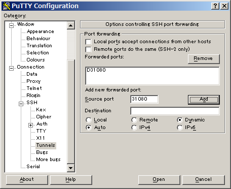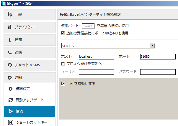 ソースの表示以前のリビジョンバックリンク全て展開する/折り畳む文書の先頭へ Share via Share via... Twitter LinkedIn Facebook Pinterest Telegram WhatsApp Yammer Reddit Teams最近の変更Send via e-Mail印刷パーマリンク × 目次 SkypeをOpenSSHのSOCKSプロクシ経由で使う 動機 試した環境 設定 サーバ クライアント おまけ 感想 SkypeをOpenSSHのSOCKSプロクシ経由で使う 動機 会社でSkypeが禁止されてしまった。ネイティブクライアントが接続できなくなったのは言うに及ばず、SkypeのWebサイトさえも繋がらないので、ドメインかIPアドレスでフィルタリングされた模様。 地味に不便なので、どうにか使えないかと調べてみると、SOCKSが使えそうという事が分かった。 SOCKSプロクシサーバ機能も持つOpenSSHのポート転送と組み合わせることで、SSHの疎通さえできれば非常に簡単にSOCKSプロクシをでっち上げる事ができる。 よいこのみんなはまねしちゃだめだよ(`・ω・´) えらいひとにおこられてもしらないよ 試した環境 サーバ側 FreeBSD 10.1-RELEASE-p10 OpenSSH 6.6.1p1 クライアント側 Windows 7 (x64) Skype 7.22.0.109 PuTTY 0.67 当然ながら、サーバ-クライアント間でSSHが通る必要がある。 設定 サーバ SSHでログインできる状態になっていればOK。 強いて言えば、SSHポート転送とSOCKSプロクシが有効になっている必要があると思われるが、当方環境ではデフォルト設定で問題なかった。 クライアント PuTTY SSHサーバへの接続設定をする。 SSHポートフォワード設定をする。 Source port:31080(環境に合わせて適宜変更する) Dynamicを選択 サーバに繋ぐ。 Skype [ツール]>[設定]>[詳細]>[接続] とたどり、以下のように設定する プロトコル:SOCKS5 ホスト:localhost ポート:31080 (SSHポートフォワードで設定した値) Skypeを再起動する 設定に間違いがなければ、無事Skypeが繋がる。あ、ただチャットの方しか動作確認してないっす。通話できるかは不明。 おまけ Webブラウザのプロクシ設定でSOCKSの設定を同様に行うと、ブラウザのパケットを全てSSHサーバ経由でやり取りができる。接続IPアドレス確認サイトで見ると、繋いでるSSHサーバ経由になっている事が一目瞭然で分かる。 昔からこの設定項目の存在は知っていたけど、使い途は知らなかった。こういう使い方ができるとはねー、色々と繋がった。 感想 SOCKSやばい。というか、SSHポート転送とSOCKSの組み合わせがやばい。SSHが通ってアプリがSOCKS対応してれば、簡単にVPNもどきが作れちゃう。ネットワーク管理者泣かせの機能だね!(まぁSSHも封じてしまえば良いんだけど) もう全部の通信アプリがSOCKS対応すればいいのに…! network/use_skype_via_openssh_socks_proxy.txt 最終更新: 2016-04-20 11:43by Decomo