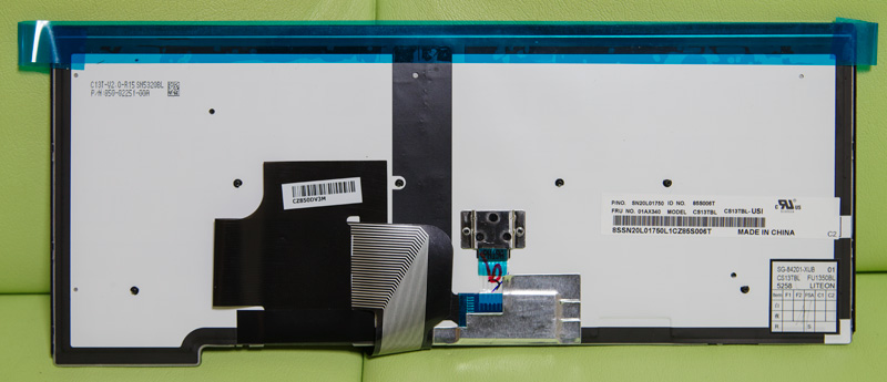 今回はLite-On1)のバックライト付きUSIキーボード「01AX340」を調達した。eBayで送料込み5000円弱で買えた。同じ仕様でも、廃番や供給業者の変更でFRUが変わることがままあるため、FRUから検索するのではなく、機種名とキーボード仕様で販売サイトを検索し、商品ページに載ってるFRUから詳しい仕様・適合性を確認する方が楽だろう。