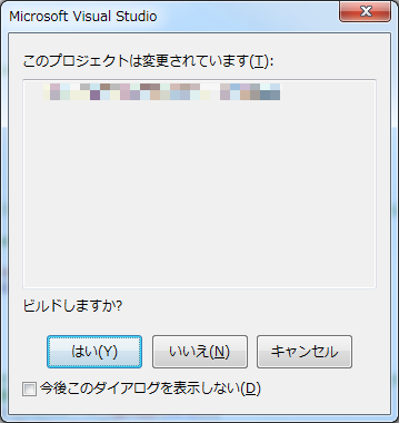 デバッグ開始時、標準では「このプロジェクトは変更されています:(中略) デバッグしますか?」ダイアログが出るが、手が滑って「今後このダイアログを表示しない」をチェックを入れて続行してしまう事がある。