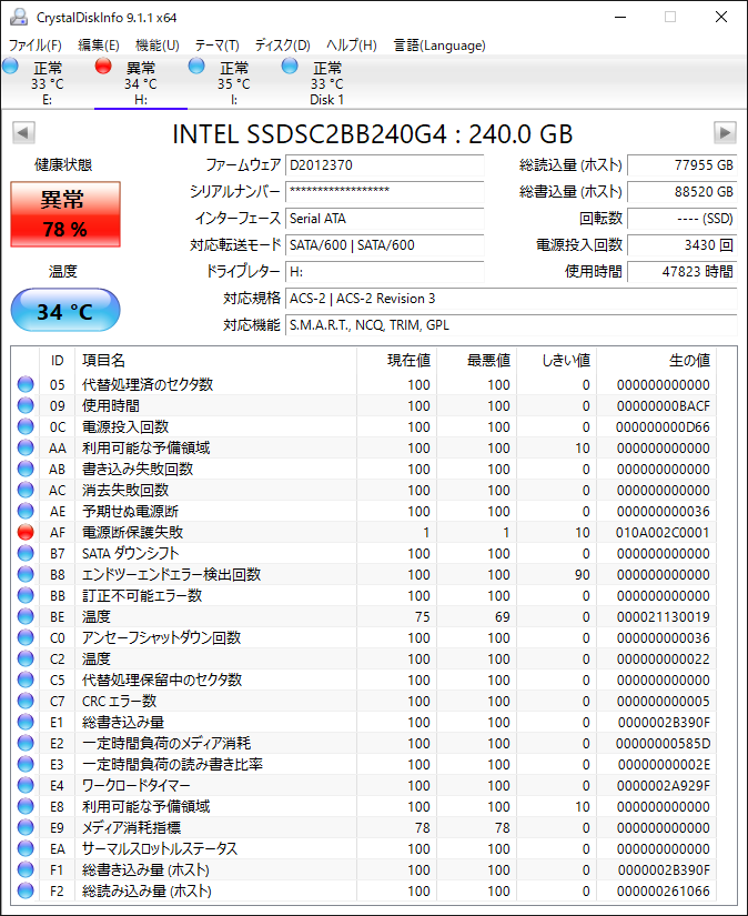 ソースの表示以前のリビジョンバックリンク全て展開する/折り畳む文書の先頭へ Share via Share via... Twitter LinkedIn Facebook Pinterest Telegram WhatsApp Yammer Reddit Teams最近の変更Send via e-Mail印刷パーマリンク × C#の0がenum値に暗黙キャストされてinvokeStaticで例外出て超ハマった 僕はついさっき知ったばかりなんですけど、C#の数値0ってあらゆるenum値に暗黙的キャストされるんですってね。要するに、0だけはキャスト不要で列挙型の値として変数に代入できちゃったりするということ。コードで示すと以下のようなかんじ。 using System; public class Program { enum Hoge { A, B } enum Piyo { C, D } public static void Main() { Hoge h1 = 0, h2 = 0.0f; Piyo p1 = 0x0, p2 = 0.0m; Console.WriteLine($"{h1}, {h2}"); Console.WriteLine($"{p1}, {p2}"); } } このコードは何の警告もなくビルドが通り、以下の実行結果が得られる。 A, A C, C 浮動小数点数やDecimalのゼロも同様の扱いっていうのが、なかなかのキモいポイント。C#のenumってC/C++のそれと違ってそれなりに厳密なので、自分的には結構衝撃的な仕様だった。まぁ、分かってしまえばどうってことはない。 で、ここからが本題。 そんな0のenumへの暗黙的型変換のおかげで、意図せぬメソッドのオーバーロード解決が行われ、小一時間ハマった。 以下のような処理メソッドAddと、それに対する単体テストAddTestを考える。対象メソッドはプライベートな静的メソッドなので、テスト呼び出しにはPrivateType.InvokeStaticメソッドを使っているが、至ってシンプルなコードである。 何の疑いもなく動くと思いきや、ケース3のテストでのみMissingMethodException例外が発生し、Addメソッドの呼び出しに失敗するのだ! // 加算 private static decimal? Add(decimal? v1, decimal? v2) { return v1 + v2; } // Addメソッドの単体テスト void AddTest() { var privateType = new PrivateType(typeof(AddClass)); // ケース1 var value = (decimal?)privateType.InvokeStatic("Add", 1.0m, 1.0m); // OK Assert.AreEqual(2, value); // ケース2 value = (decimal?)privateType.InvokeStatic("Add", 1.0m, 0.0m); // OK Assert.AreEqual(1, value); // ケース3 value = (decimal?)privateType.InvokeStatic("Add", 0.0m, 1.0m); // MissingMethodException例外が発生! Assert.AreEqual(1, value); } MissingMethodExceptionは読んで字のごとく、メソッドが見つからなかった場合に投げられる例外だ。 ケース1~2は通っているのに見つからないとは一体…!?という感じなのだが、これまでの説明からお気づきであろう、ケース1~2と3では呼び出されるInvokeStaticのシグネチャが違うのだ。同メソッドは引数違いで10個ほどのオーバーロードが定義されており、それぞれ以下のシグネチャのものが呼び出される。 ケース1~2 InvokeStatic(String, params Object[]) ケース3 InvokeStatic(string, System.Reflection.BindingFlags, params Object[]) ケース3では、第二引数の0.0mがBindingFlagsに暗黙キャストされた結果、引数を1つ持つAddメソッドを呼び出そうとして例外を吐くというわけ。なんじゃそりゃー!分かるわけネェーッ!!意図通り動かすにはprivateType.InvokeStatic(“Add”, (decimal?)0.0m, 1.0m)のように、明示的にキャストし正しいオーバーロード解決を導いてあげればよい。 この暗黙型変換を禁止ないし警告出してくれるコンパイルオプションとかないのかしら…ハマった時に死ぬほどわかりづらいんですけど…… PowerEdge T330/PERC H330環境でPVE 8がEFI stubうんちゃらで起動できない件 PowerEdge T330とITファームを書き込んでHBA化したPERC H330環境で、H330に接続したストレージにインストールしたProxmox VE 8.0-2を起動しようとすると、EFI stub: Loaded initrd from LINUX_EFI_INITRD_MEDIA_GUID device pathと出て止まってしまう。マザボから生えてる内蔵SATAの方だと問題ない。 PVEのフォーラムでも同様の現象が報告されている。 Stuck at EFI stub | Proxmox Support Forum Proxmox 8 boot stuck at "EFI stub: Loaded initrd from LINUX_EFI_INITRD_MEDIA_GUID device path" | Proxmox Support Forum ZFSがらみの何かっぽくext4なら大丈夫らしい。根本的な解決策は見当たらないが、PVE 7をインストールしアップデートでPVE 8にした場合は起動するそうで、試しにやってみたら確かに問題なくPVE 8が立ち上がった。すんごい気持ち悪いんですけど。 BIOSとiDRACあたりとの相性かと思い数時間かけて頑張って更新したが、完全な無駄足になってしまった…。更新後はJava版の仮想コンソールが何故か起動に失敗すること多いし、PVEで仮想コンソールのキー入力が全く効かないわ、ACPIシャットダウンが機能しないわでマジで意味がわからん。ただの無駄足であってくれた方がなんと良かったことか…… 一応PVEの動作に問題はなさそうだけど、どうしたものか。 5年半使ったIntel DC S3500 240GBの状態とベンチマーク ファイルサーバで使ってたInte SSD DC S3500 240GB (SSDSC2BB240G4)がお役御免となった。購入記録を採ってるわけじゃないけど、たぶんこの時のSSD⇒Intel SSDSC2BB240G4 (DC S3500 240GB) のベンチマーク。のちに同じSSDを中古購入し、2台でRAID組んでWindows Serverのシステム領域兼記憶域階層のSSD層として使っていた。先に買った方、つまり当時のベンチマークがある方の使用時間は5年半ほどになる。 経年でどの程度パ
