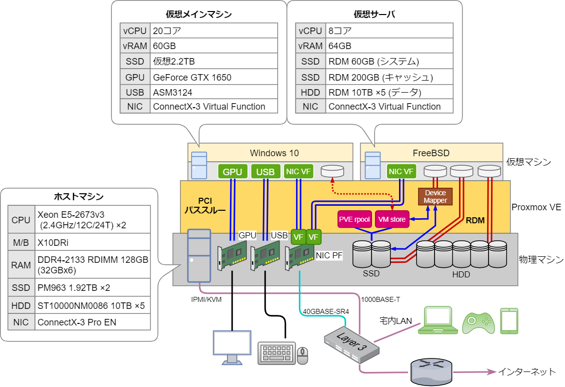 ソースの表示以前のリビジョンバックリンク全て展開する/折り畳む文書の先頭へ Share via Share via... Twitter LinkedIn Facebook Pinterest Telegram WhatsApp Yammer Reddit Teams最近の変更Send via e-Mail印刷パーマリンク × PowerEdge T330/PERC H330環境でPVE 8がEFI stubうんちゃらで起動できない件 PowerEdge T330とITファームを書き込んでHBA化したPERC H330環境で、H330に接続したストレージにインストールしたProxmox VE 8.0-2を起動しようとすると、EFI stub: Loaded initrd from LINUX_EFI_INITRD_MEDIA_GUID device pathと出て止まってしまう。マザボから生えてる内蔵SATAの方だと問題ない。 PVEのフォーラムでも同様の現象が報告されている。 Stuck at EFI stub | Proxmox Support Forum Proxmox 8 boot stuck at "EFI stub: Loaded initrd from LINUX_EFI_INITRD_MEDIA_GUID device path" | Proxmox Support Forum ZFSがらみの何かっぽくext4なら大丈夫らしい。根本的な解決策は見当たらないが、PVE 7をインストールしアップデートでPVE 8にした場合は起動するそうで、試しにやってみたら確かに問題なくPVE 8が立ち上がった。すんごい気持ち悪いんですけど。 BIOSとiDRACあたりとの相性かと思い数時間かけて頑張って更新したが、完全な無駄足になってしまった…。更新後はJava版の仮想コンソールが何故か起動に失敗すること多いし、PVEで仮想コンソールのキー入力が全く効かないわ、ACPIシャットダウンが機能しないわでマジで意味がわからん。ただの無駄足であってくれた方がなんと良かったことか…… 一応PVEの動作に問題はなさそうだけど、どうしたものか。 Proxmox VEで仮想ディスクを4Knデバイスとして扱う Proxmox VEの仮想ディスクは、仮想マシンから512バイトセクタのストレージとして見える。正確にはQEMUのデフォルト挙動で、仮想環境における極々一般的な挙動なので普通に使う分には困らないし、意識すらしないだろう。 じゃあどんな時に困るかというと、物理・論理セクタサイズの両方が4096バイトの、いわゆる4KnデバイスをRDMでVMにアタッチする場合や、4Kn環境をそのままP2Vした時のディスクイメージとかで困る。例えばパーティションテーブルなんかはLBA(セクタ番号)で管理されているので「パーティション1はセクタ1~262144」という設定は、4kセクタ環境なら1GiB、512バイトセクタ環境なら128MiBのパーティションを表すことになり、だいぶマズいわけですよ。(そもそも、GPTの配置自体が“LBA 1”と規定されているのでセクタサイズが合ってないとパーティションテーブル自体が正しく認識されない。) というわけで、仮想ディスクを4Knとして認識させるには、/etc/pve/qemu-server/VMID.confをエディタで直接編集し、args:に下記の設定を追加してやればよい。 args: -set device.scsi0.physical_block_size=4096 -set device.scsi0.logical_block_size=4096 scsi0の0の部分はSCSI IDなので任意に読み替え可能で、複数のデバイスも同様に設定が可能。SATAやvirtio-blkも行けると思うけど未確認。 説明するまでもないだろうが、物理と論理のセクタサイズをそれぞれ4096に指定してあげればよい。物理4096, 論理512にすれば512e扱いになるかも? 上記設定を行った4KnのSSD×3、512eのHDD×5をRDMしてる当方の仮想環境では、想定通りに認識されている。 $ dmesg | grep sectors da0: 2969600MB (760217600 4096 byte sectors) da1: 2969600MB (760217600 4096 byte sectors) da2: 2969600MB (760217600 4096 byte sectors) da3: 17166336MB (35156656128 512 byte sectors) da4: 17166336MB (35156656128 512 byte sectors) da5: 17166336MB (35156656128 512 byte sectors) da6: 17166336MB (35156656128 512 byte sectors) da7: 17166336MB (35156656128 512 byte sectors) cd0: 998MB (511254 2048 byte sectors) また一つ、どーでもよいノウハウがたまってしまった。 参考サイト Change of sectorsize | Proxmox Support Forum 空き容量0でZFSが壊れた?Input/Output errorが発生→再起動で直った 不注意でProxmox VEのZFSプールを使い切り、空き容量がゼロという状態になってしまった。すべてのデータセットのAVAILが0という本物のゼロである。VMのディスクがthinで図らずもオーバーコミット状態となっており、VM内で物理容量以上のファイルコピーを行ってしまったのが原因。当然ながらVMは固まるわ、PVEもWebコンソールから何もできないわで超焦った…。 幸い物理コンソールは生きていたので、不要なZVOLを消して事なきを得たと思いきや、ファイル操作をするとInput/output errorが起きるようになってしまった。 root@myserver:/etc/pve/nodes/myserver/qemu-server# touch test touch: cannot touch 'test': Input/output error ファイル/ディレクトリの作成、削除がダメ。既存ファイルの読み込みは問題なさそうで、書き込み系がダメっぽい。それもすべての場所でダメというわけではなく、ルートディレクトリ直下は大丈夫だったりする。同じデータセットなのに。 もちろんzpool scrubでエラーが出ないことは確認済み。というわけで実に厄介というかヤバい状況なのであーる。どうすんのこれ… 関係しそうなバグチケ報告もあるにはある。 silent corruption gives input/output error but cannot be detected with scrub, experienced on 0.7.5 and 0.8.3 versions · Issue #10697 · openzfs/zfs · GitHub silent corruption for thousands files gives input/output error 